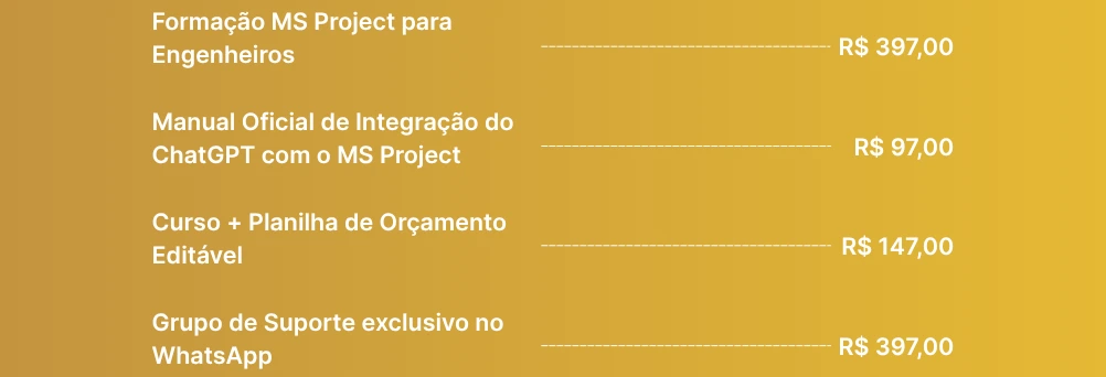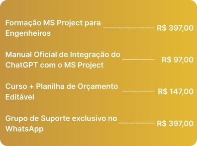 Você aprende a montar o Orçamento de Obra com composições e BDI, e exporta direto para o Project usando uma planilha prática e testada.