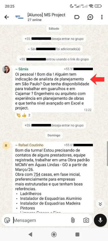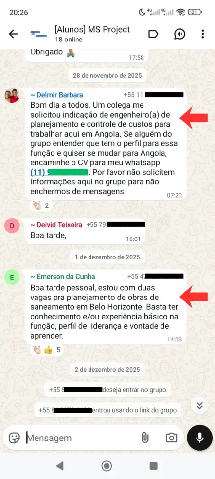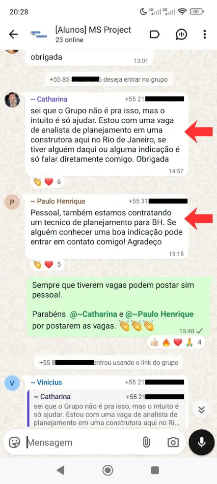 Além de dominar Gestão com MS Project e ter suporte assessível no Grupo dos alunos, você pode ter acesso a vagas exclusivas antes de sites de vagas